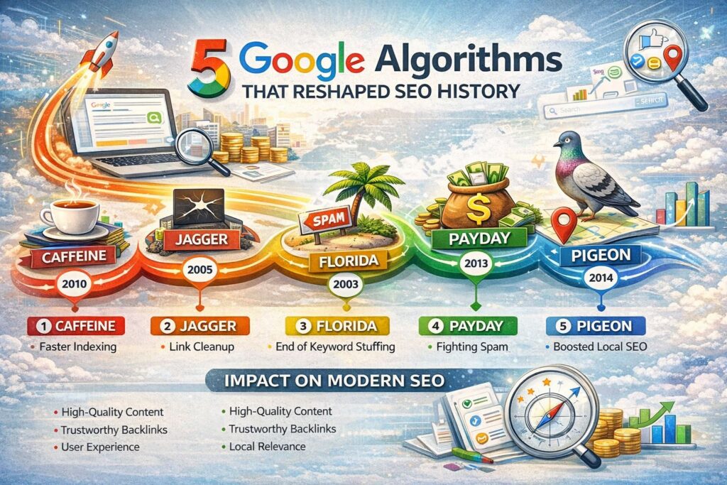 These algorithm updates established the foundation for modern SEO.